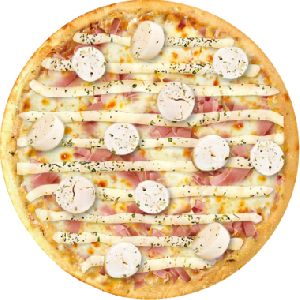 bacon, champignon, milho, mussarela, peito de peru