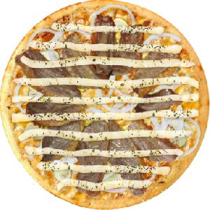 alho, catupiry, cebola, champignon, fatias de picanha, mussarela
