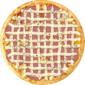 calabresa moída, cebola, mussarela salpicada