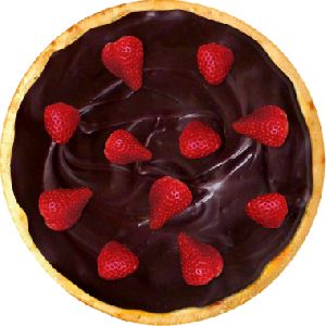 chocolate branco, lâminas de morango, riscas de chocolate ao leite
