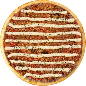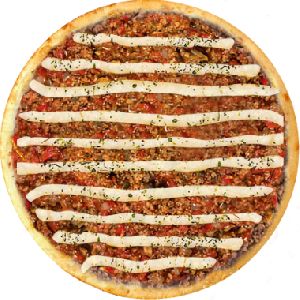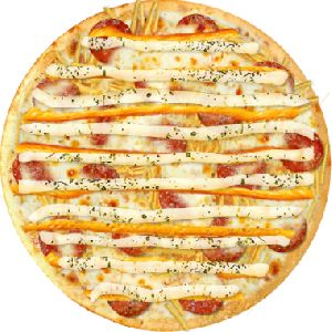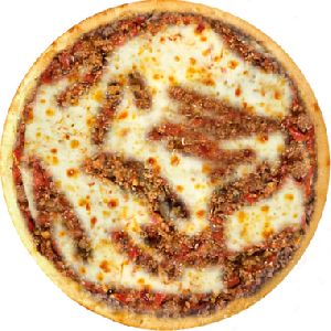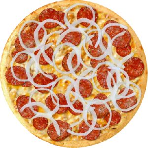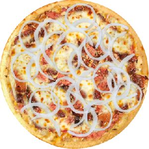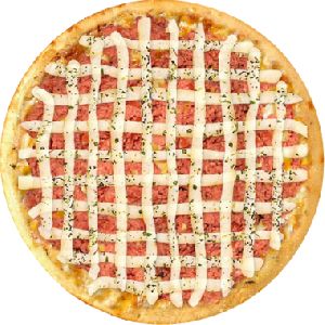 calabresa moída, cebola, mussarela salpicada