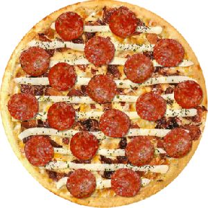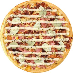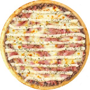 bacon, calabresa moída, cebola, mussarela, parmesão
