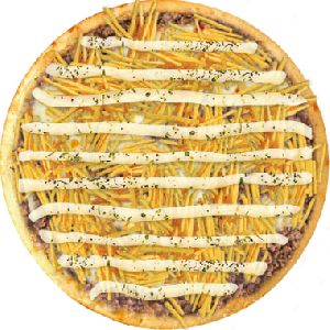 batata palha, carne moída, catupiry, mussarela, provolone